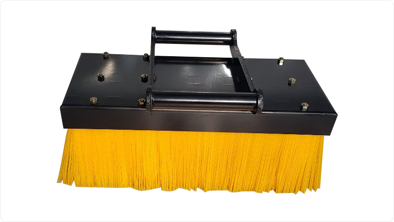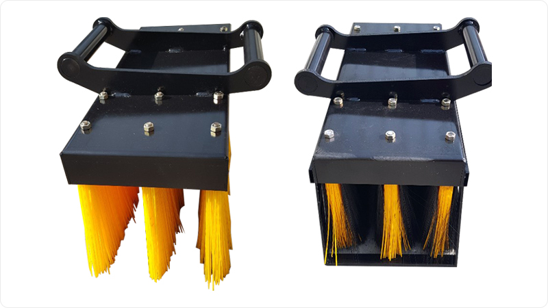 굴삭기 및 지게차 청소용 어태치먼트로 브러쉬 자체에 볼트를 넣어 제작함으로써 바디와 브러쉬의 교차가 용이하고 경계석 및 모서리 부분을 깔끔하게 청소할 수 있는 장점이 있습니다.